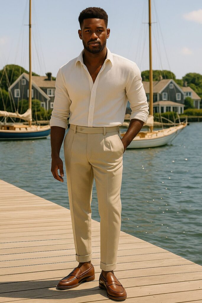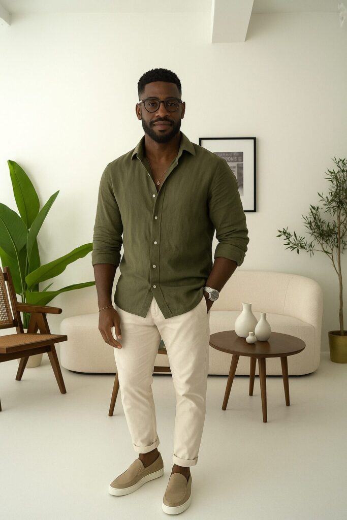 Ideal para dias quentes. Invista em tons claros (off-white, areia, verde-oliva) e dobre a manga com estilo. Use com mocassim, sandália de couro ou tênis casual.