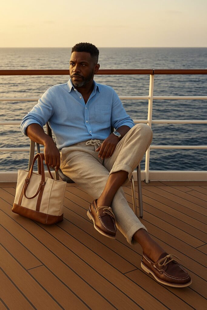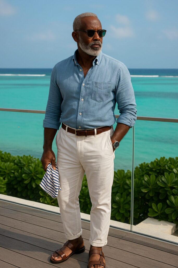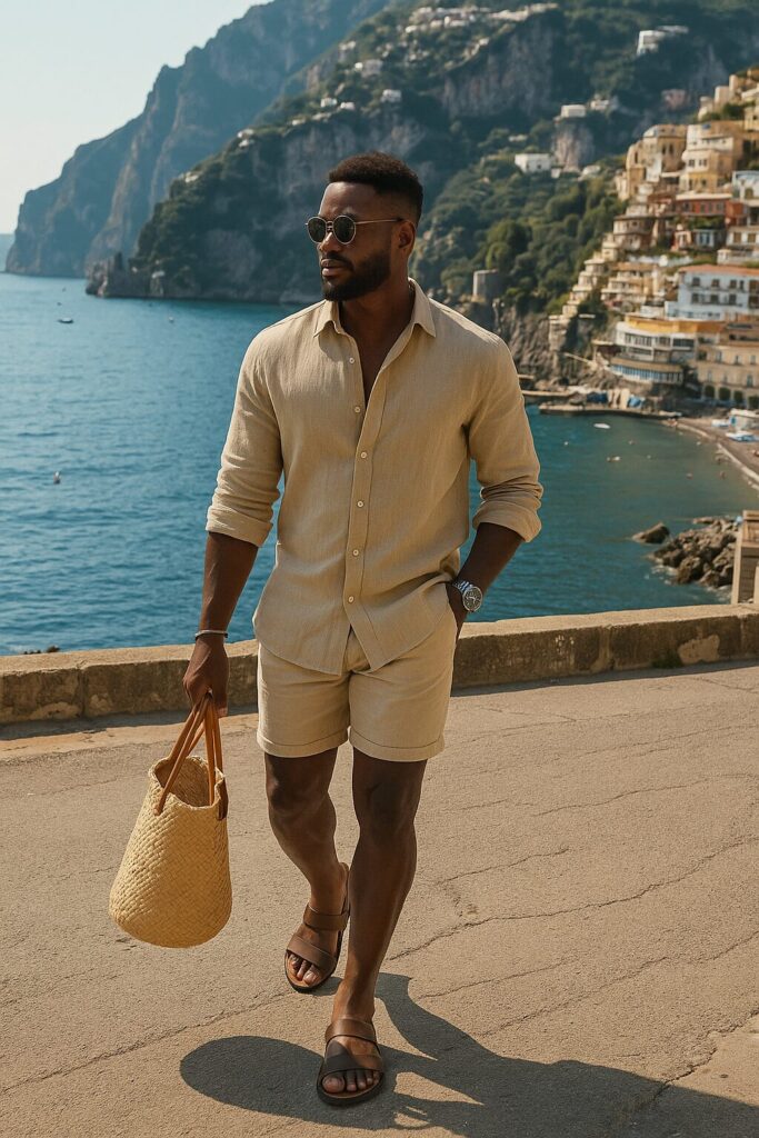 A vibe é praiana, mas sem exagero. Combine com bermuda de alfaiataria ou calça leve.