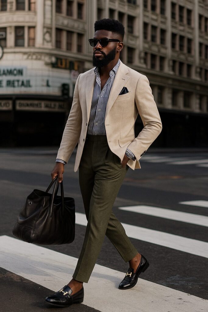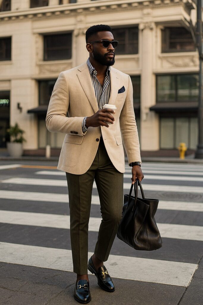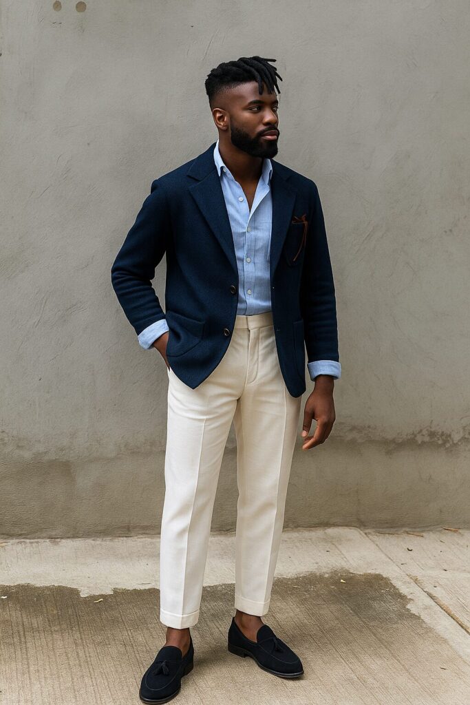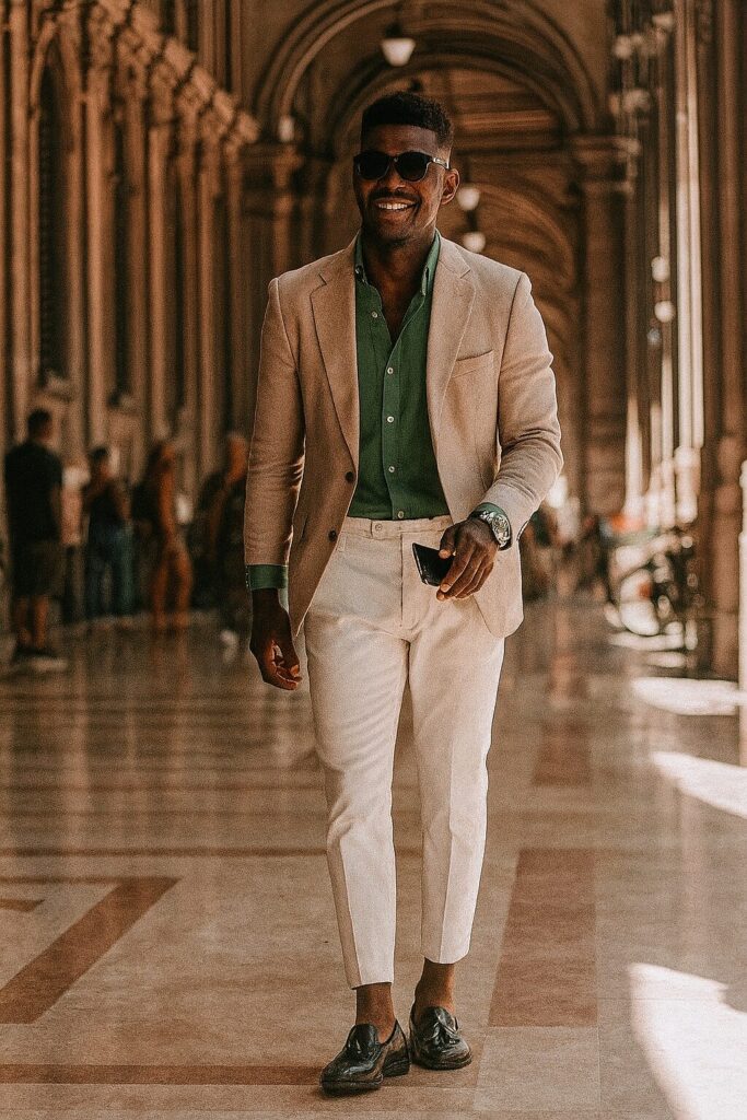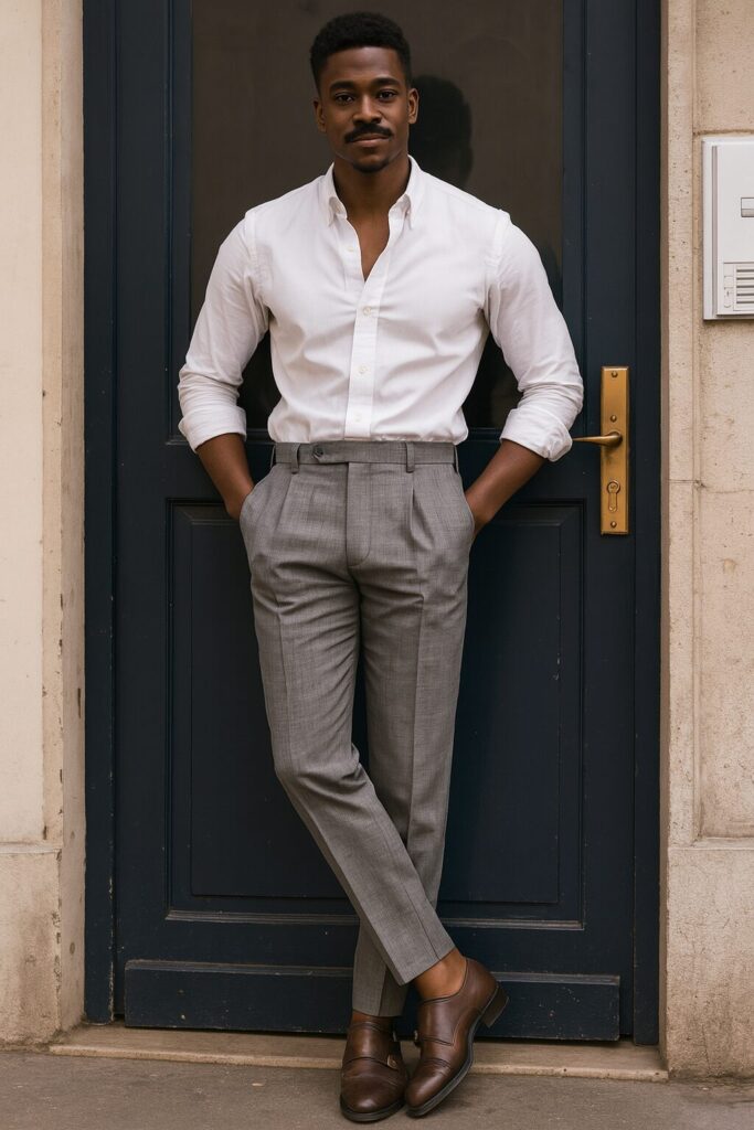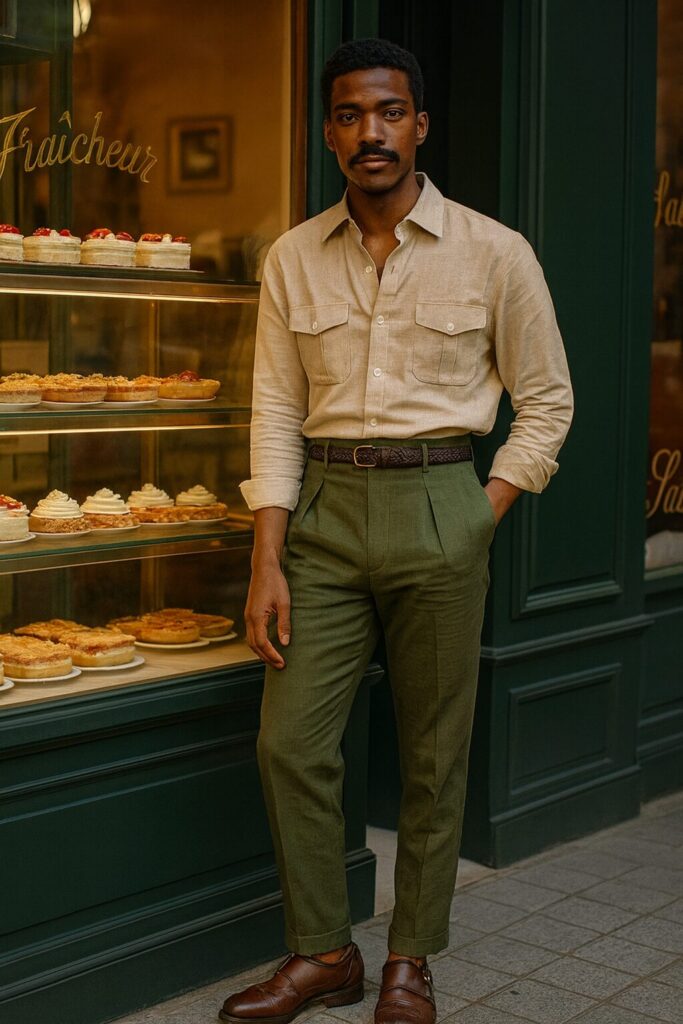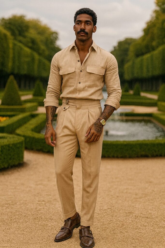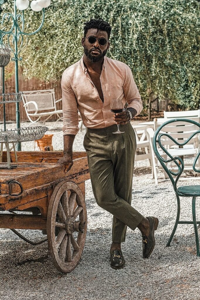 - Calça de alfaiataria + camisa de linho: escolha cores complementares (como bege e branco, marrom e vinho, azul-marinho e areia) para um look equilibrado.