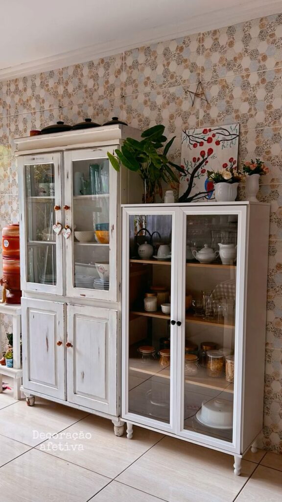 - Invista em uma cristaleira ou armário louceiro com vidro canelado.