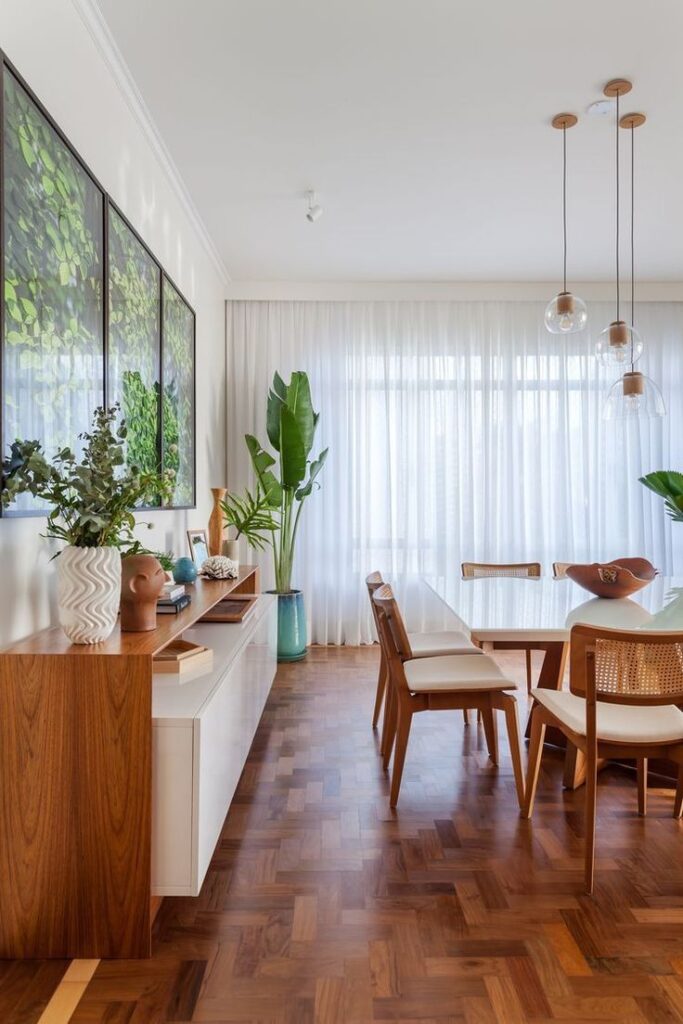 - Taco de Madeira: Se a casa tem taco, você tem um tesouro. A restauração (prefira o sinteco fosco ao brilhante) devolve a nobreza ao ambiente e aquece a decoração.