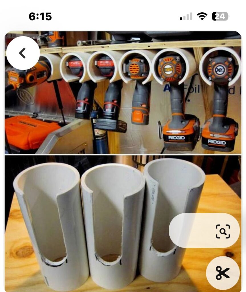 3. Corte pedaços de cano PVC para organizar furadeiras e colas
